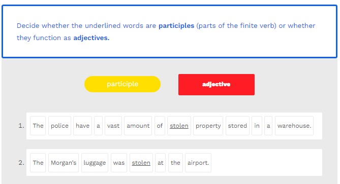 O 8.2 Decide whether the underlined words are participles (parts of the finite verb) or whether they function as adjectives.