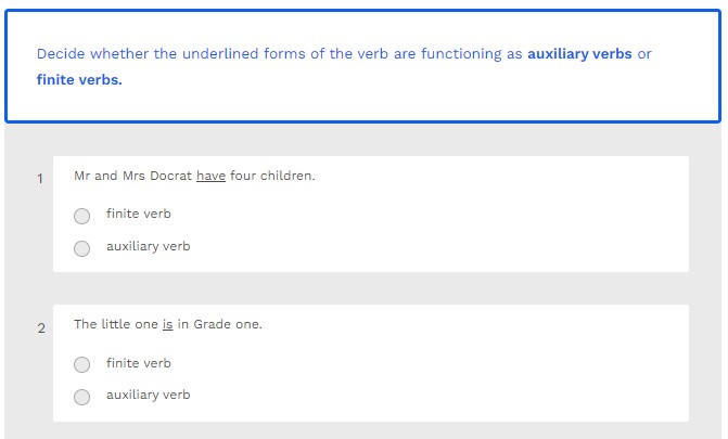 Decide whether the underlined forms of the verb are functioning as auxiliary verbs or finite verbs.