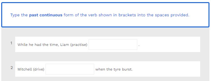 Type the past continuous form of the verb shown in brackets into the spaces provided.