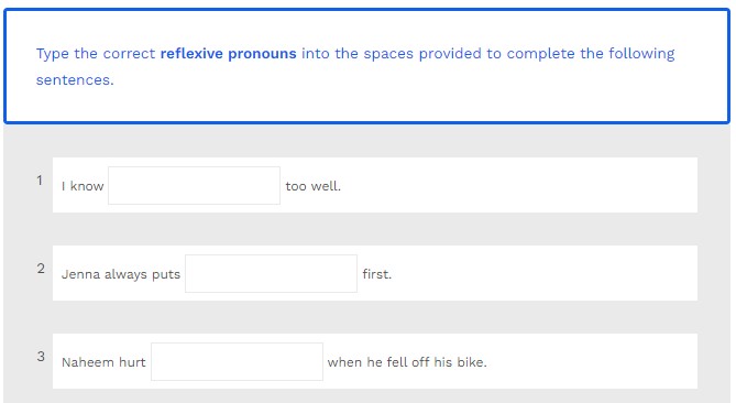 H 3.1 Type the correct reflexive pronouns into the spaces provided to complete the following sentences.