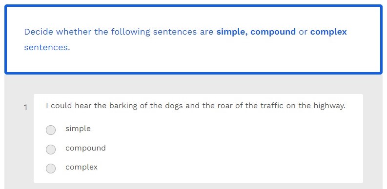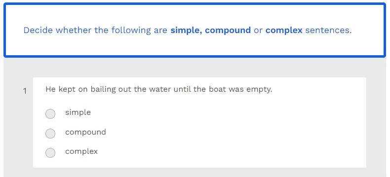 Decide whether the following are simple, compound or complex sentences.