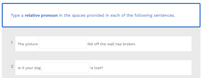 Type a relative pronoun in the spaces provided in each of the following sentences.
