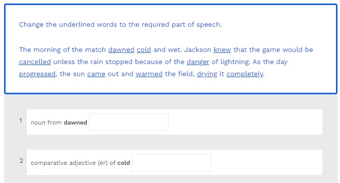 Change the underlined words to the required part of speech.