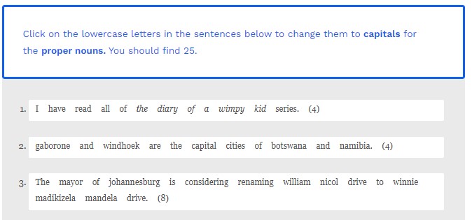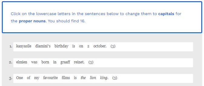 Click on the lowercase letters in the sentences below to change them to capitals for the proper nouns. You should find 16.