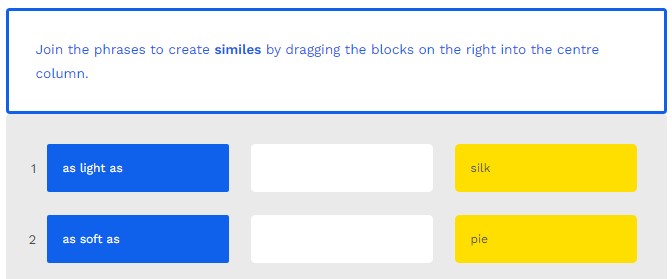 Join the phrases to create similes by dragging the blocks on the right into the centre column.