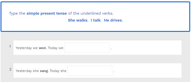 Type the simple present tense of the underlined verbs.