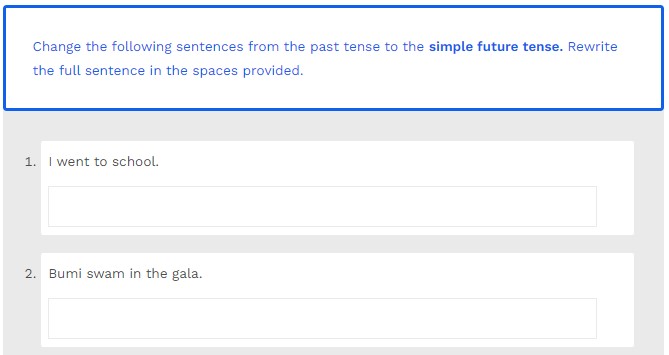 Change the following sentences from the past tense to the simple future tense. Rewrite the full sentence in the spaces provided.
