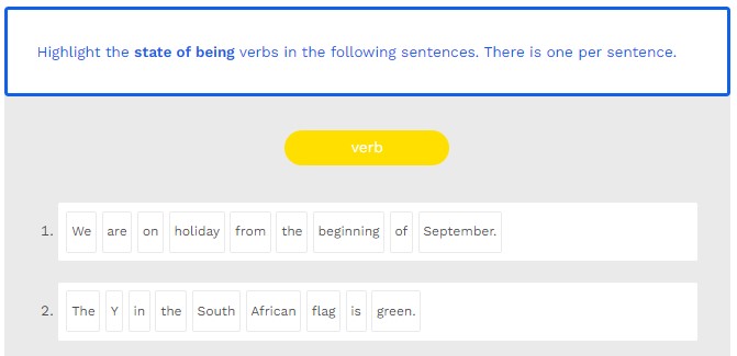 verbs in the following sentences. There is one per sentence.