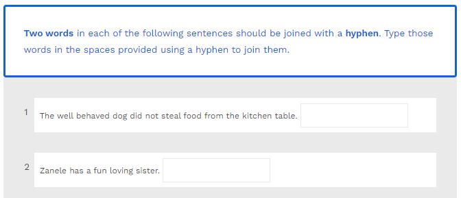 Two words in each of the following sentences should be joined with a hyphen. Type those words in the spaces provided using a hyphen to join them.