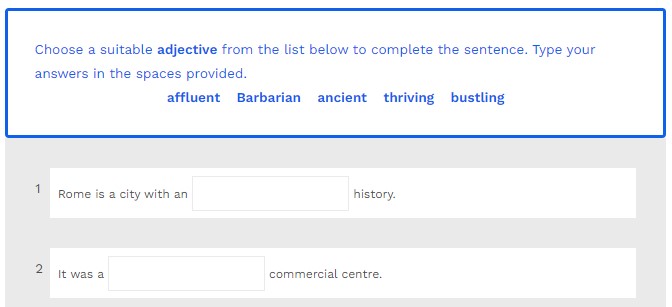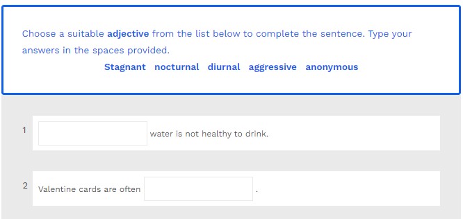 Choose a suitable adjective from the list below to complete the sentence. Type your answers in the spaces provided.